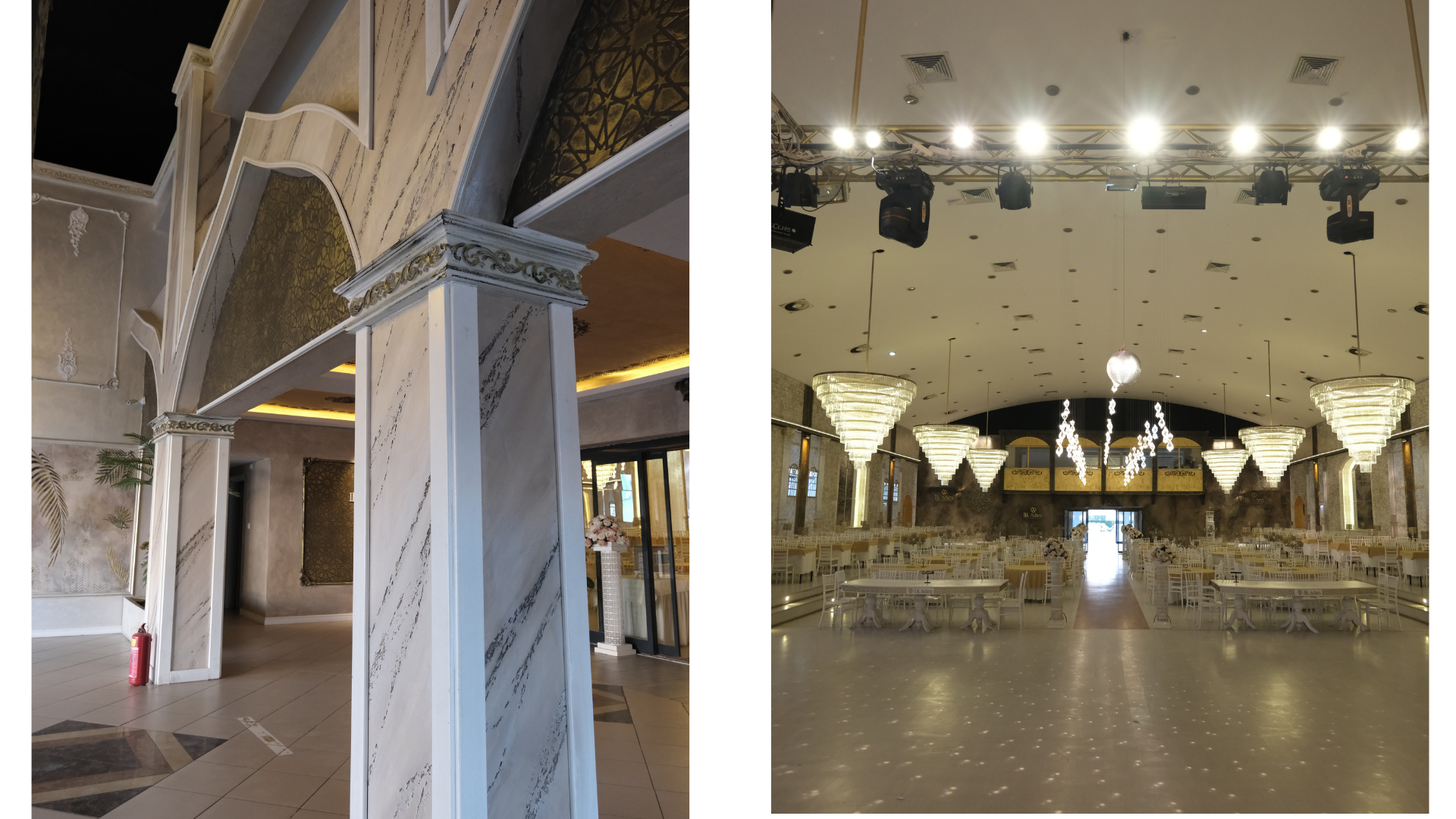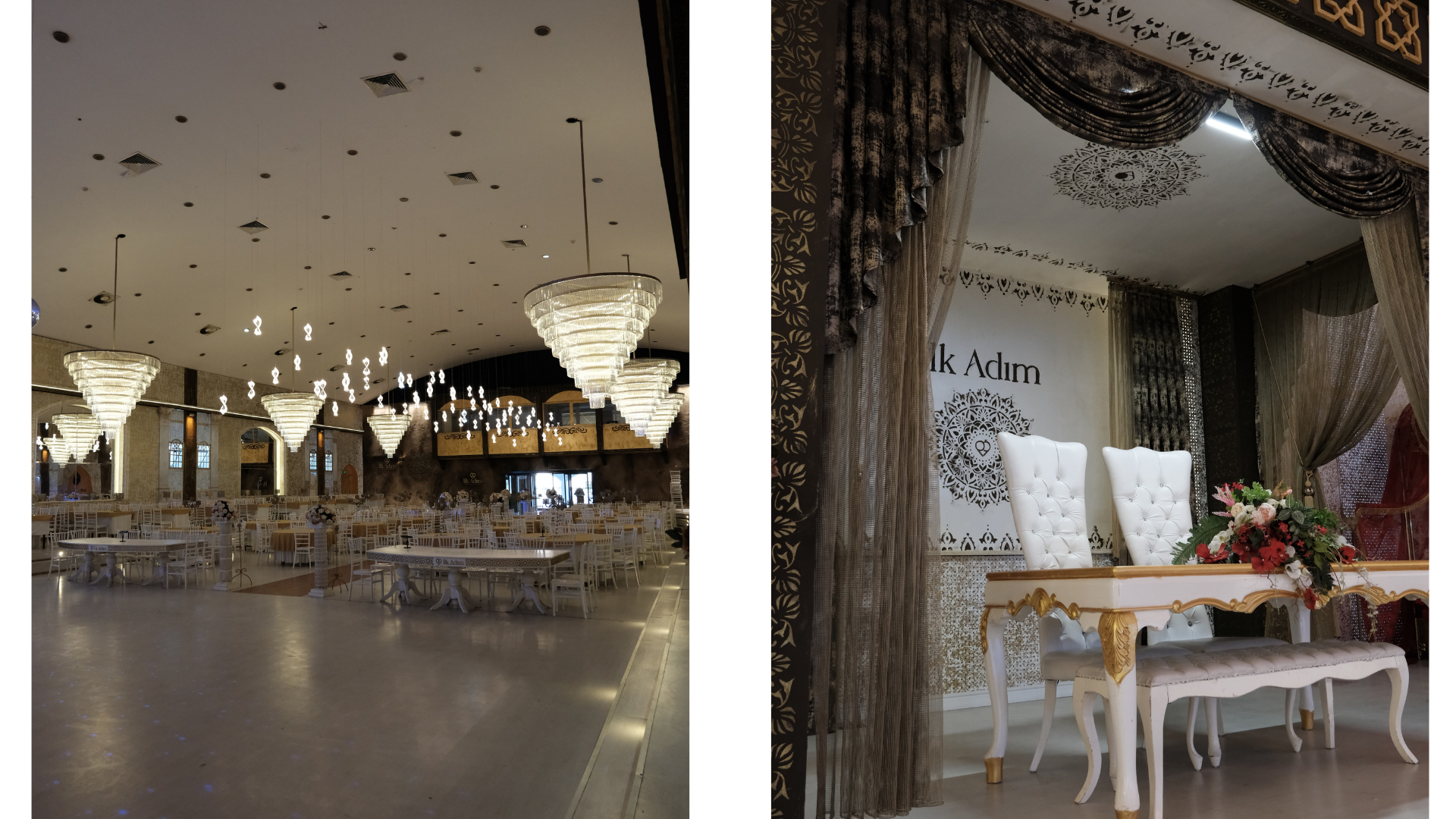 Düğün salonumuz, modern bir atmosferde, konfor ve estetiği bir arada sunarak özel günlerinize değer katmayı hedeflemektedir. Şık detaylarla donatılmış iç mekanlarımız ve ferah açık alanlarımız, en mutlu anlarınızı unutulmaz kılacak şekilde tasarlanmıştır. Hayatınızdaki bu özel günleri kusursuz bir şekilde geçirmek için bizimle iletişime geçebilir ve hayallerinizi gerçeğe dönüştürebilirsiniz.
